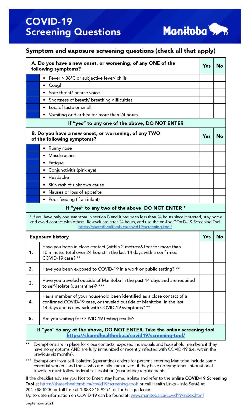 - Each participant, regardless of if they are double vaccinated, need to do a self-screen before each training day and only come to the training if they are healthy. Please use the document below.